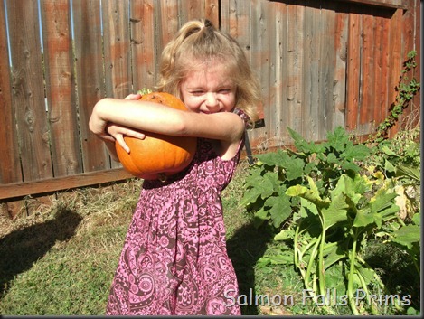We picked the pumpkins that we grew in our compost. We had tossed the old pumpkins last year and this year they grew all by themselves.
